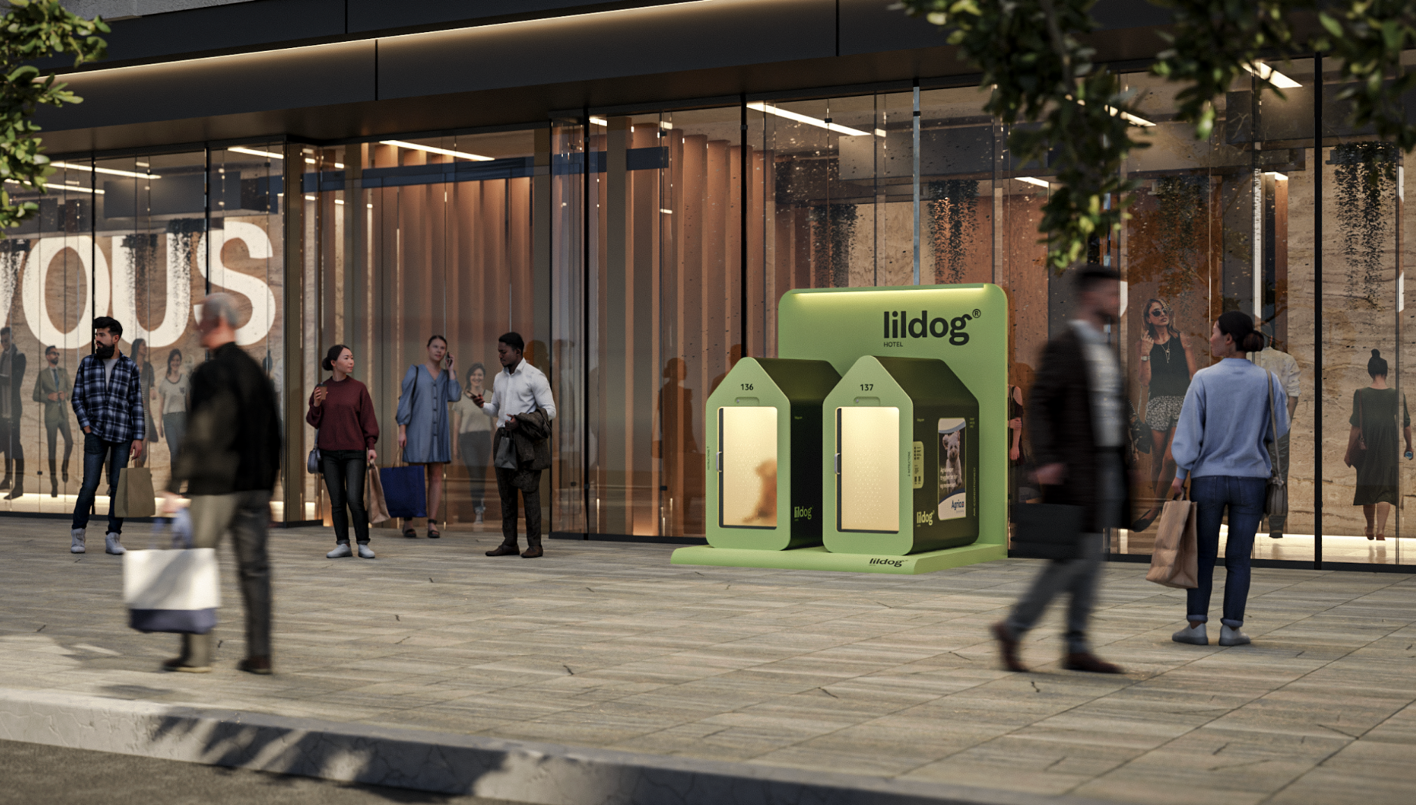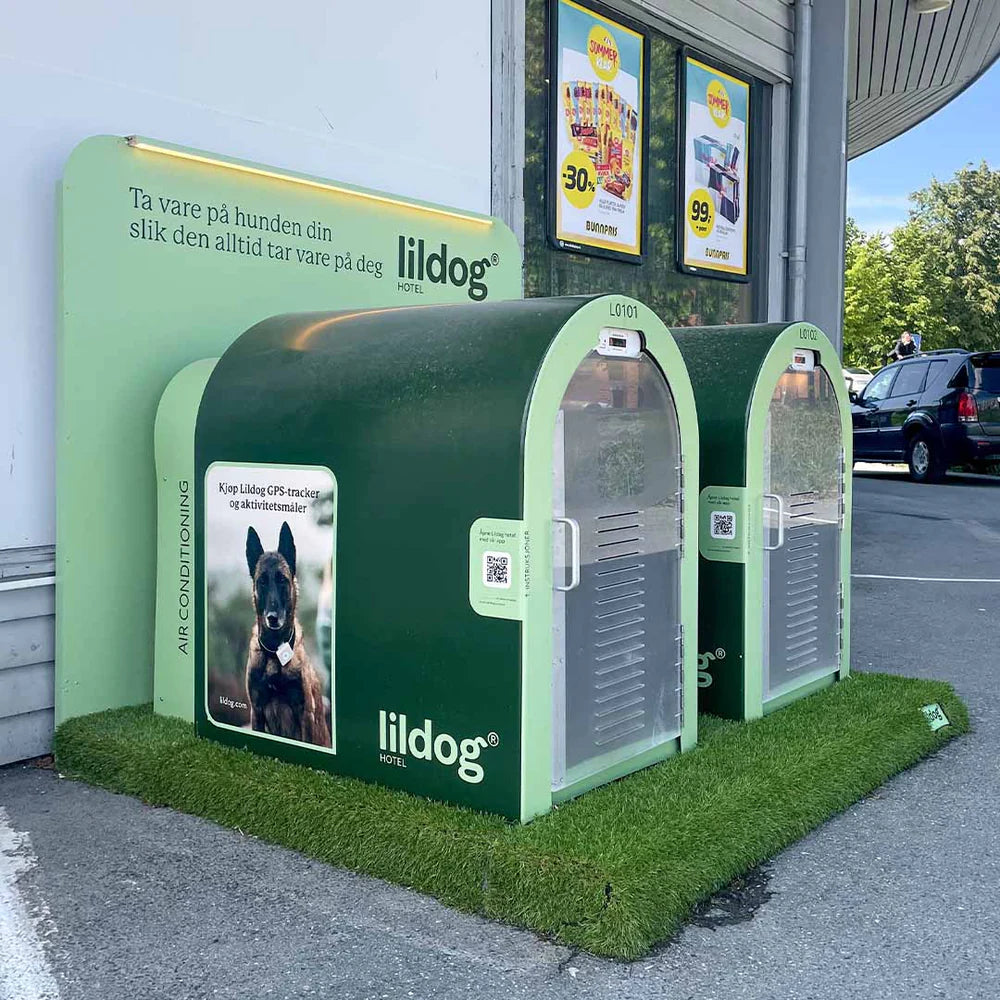 Lildog Hotel finnes utenfor butikker, kjøpesentre og spisesteder i flere land, og kan benyttes inntil 1 time av gangen. Våre hundehoteller holder hunden din trygg og komfortabel mens du mens du er innom for ærend eller en matbit. Våre hundehoteller er designet for komfort året rundt, med klimaanlegg for varme sommerdager og gulvvarme for kalde måneder. I tillegg blir hvert rom automatisk desinfisert etter hver gjest, noe som sikrer et rent og trygt miljø for din hund.